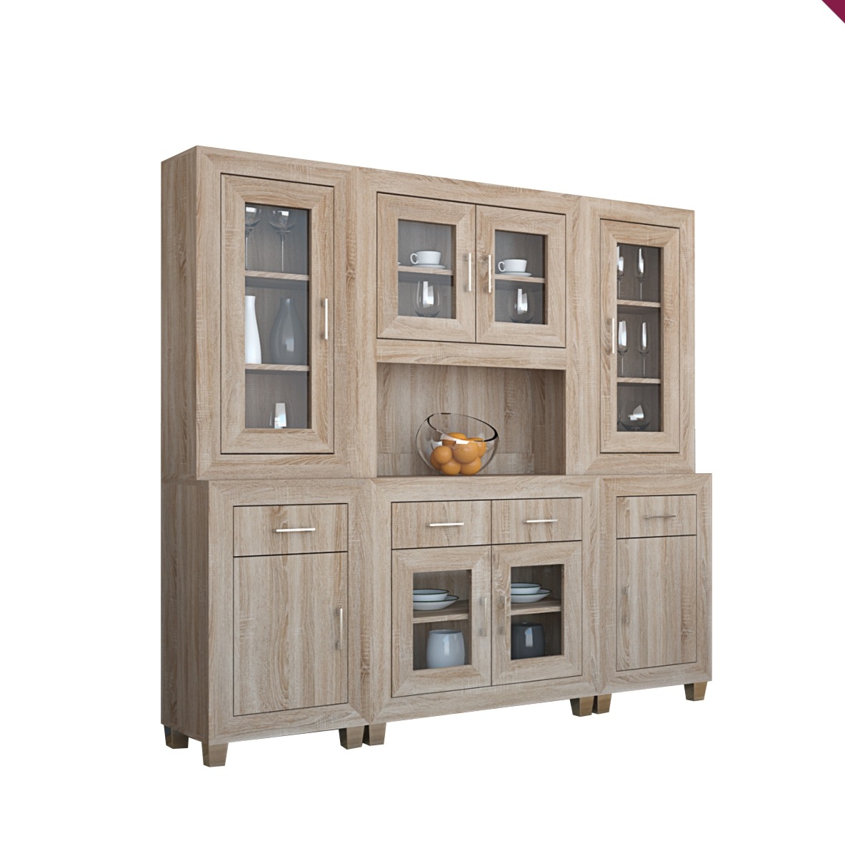 A Dany tálaló elemes kialakításának köszönhetően nagyon jól kombinálható bútordarab. Az 56 és 96 cm széles elemek variációja többféle megjelenést tesz lehetővé. A mai modern konyhákat, étkezőket is remekül kiegészíti. Sonoma tölgy és san remo színekben választható.