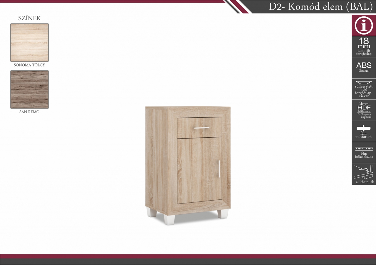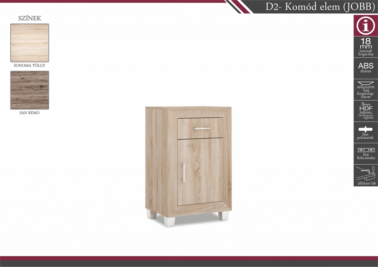 D2 – Komód elem (JOBB-BAL): 37.000Ft