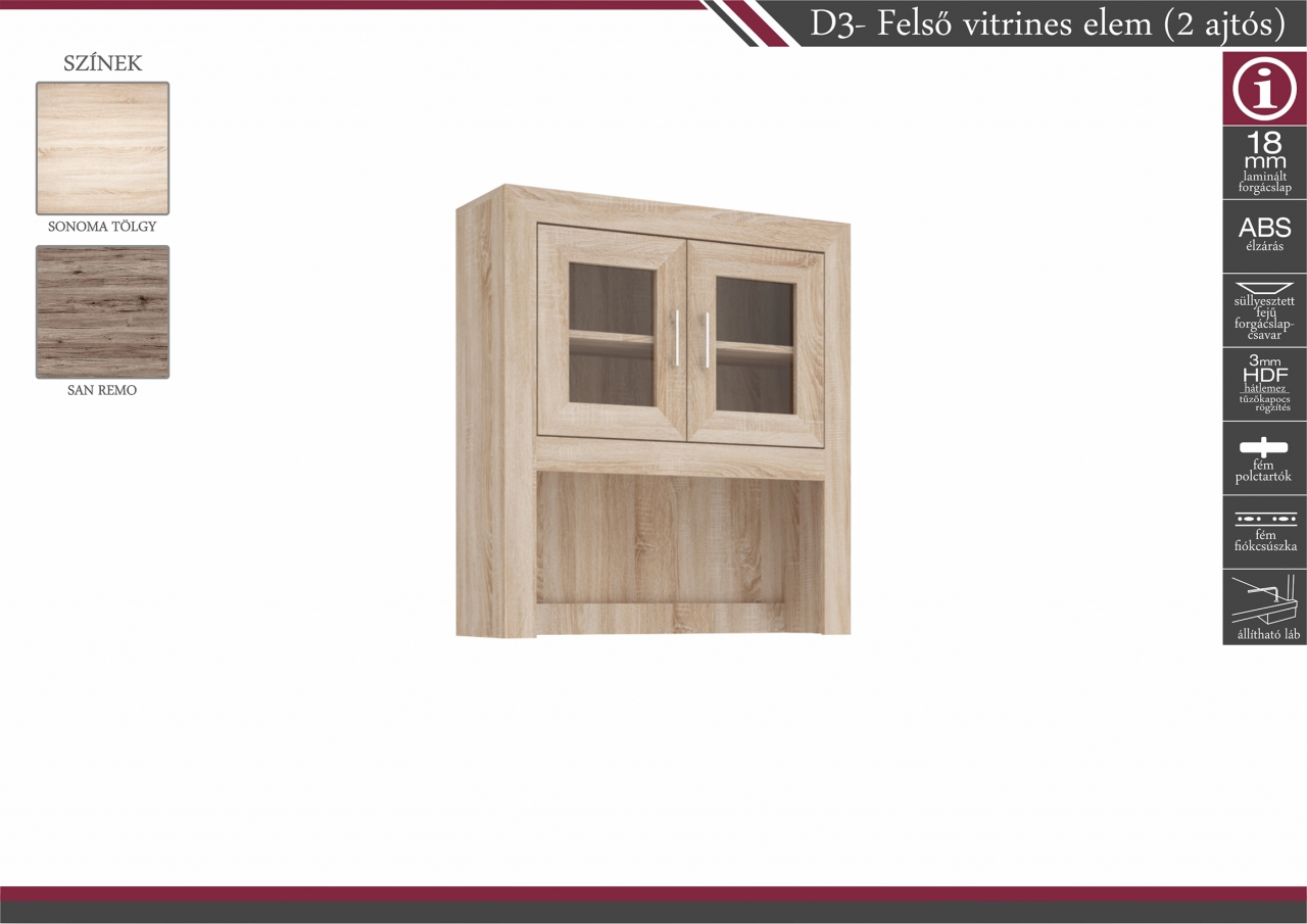 D3 – Felső vitrines elem (2 ajtós): 38.100Ft