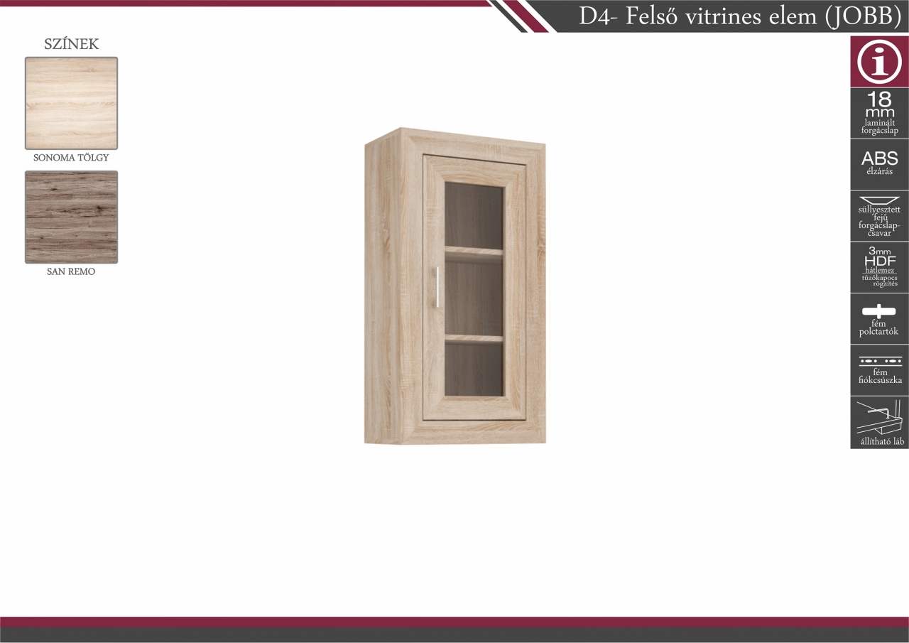 D4 – Felső vitrines elem (JOBB-BAL): 29.200Ft