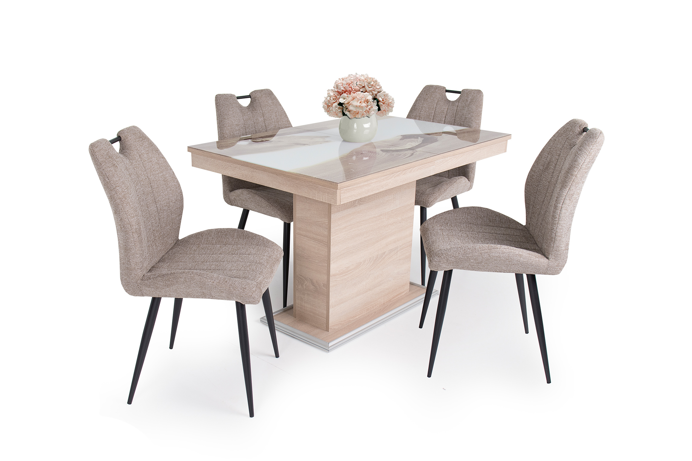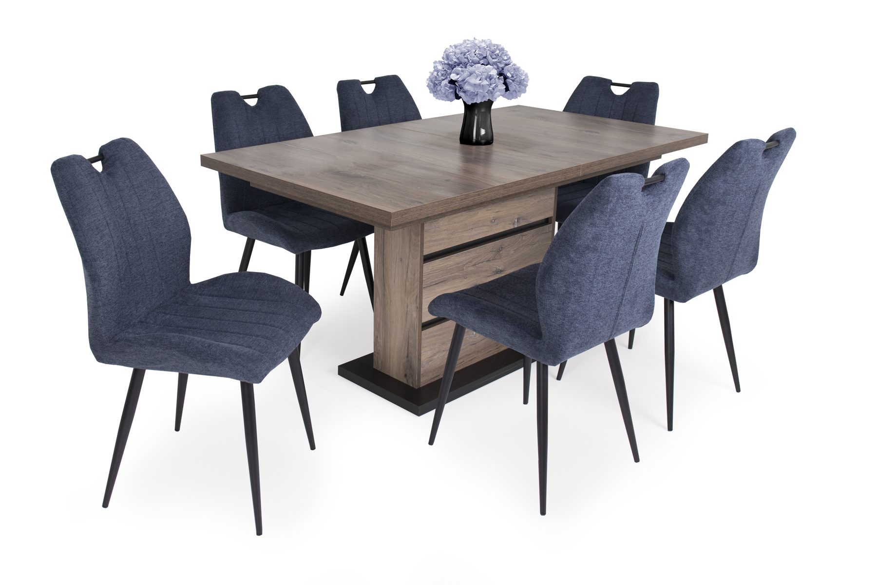 A Nelly szék szövet kárpittal és fekete festett lábakkal kitűnő kiegészítője a modern otthonoknak. Három színben érhető el: világosbarna, szürke és kék.